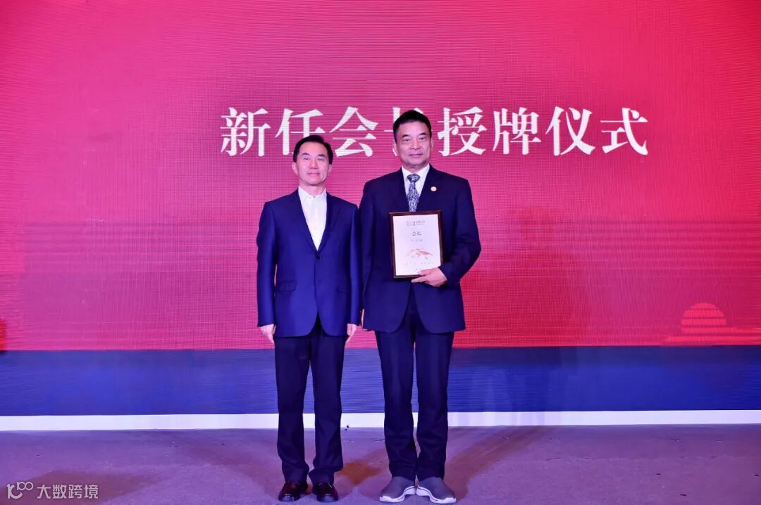 全国工商联副主席、四川省政协副主席、省工商联主席陈放向新任会长刘永好授牌。