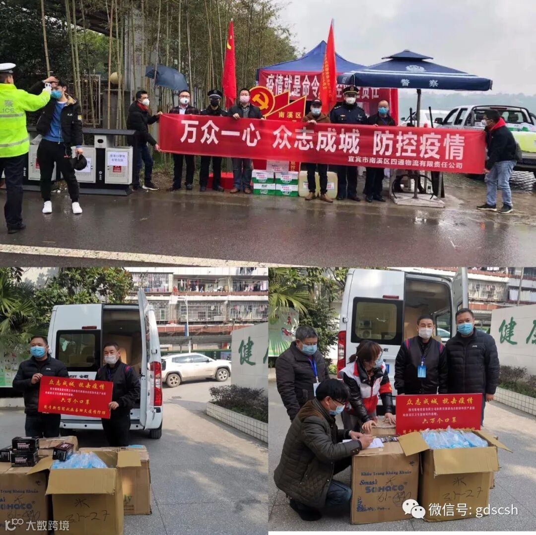 6、2月12日,广东四川商会监事长、宜宾众信集团董事局主席熊宗友向四川省宜宾市临港开发区捐赠30000个医用口罩,帮助临港开发区一线基层人员抗疫;向四川省宜宾市南溪区捐赠30000个医用口罩,帮助南溪区一线人员抗疫;其广州通友物流有限公司响应宜宾市经合局的倡议,免费将生产医用口罩的机器设备从广东东莞市运输到四川省宜宾市;其南溪区四通物流公司减免合约期内的所有商户一个月租金和市场管理费(108户)