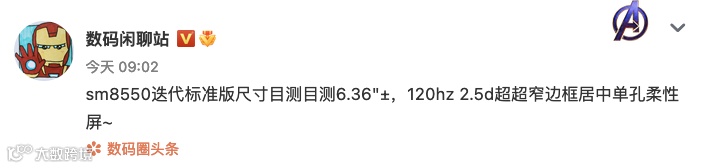 数码博主 @数码闲聊站 今日透露,一款搭载高通骁龙 8 Gen2 芯片的迭代标准版机型将采用 6.36 英寸左右的 2.5D 柔性屏幕,支持 120Hz 高刷新率,并且该屏幕采用居中单挖孔设计,边框超窄。结合该博主此前爆料,这款新机大概率为小米 13 标准版。