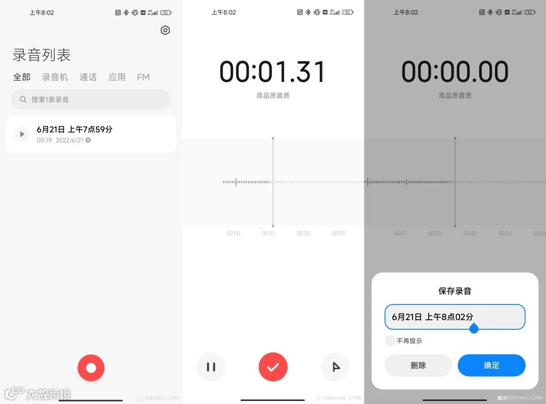 录音机UI也出现了一样设计,看来卡片化并不是个别系统App的操作。