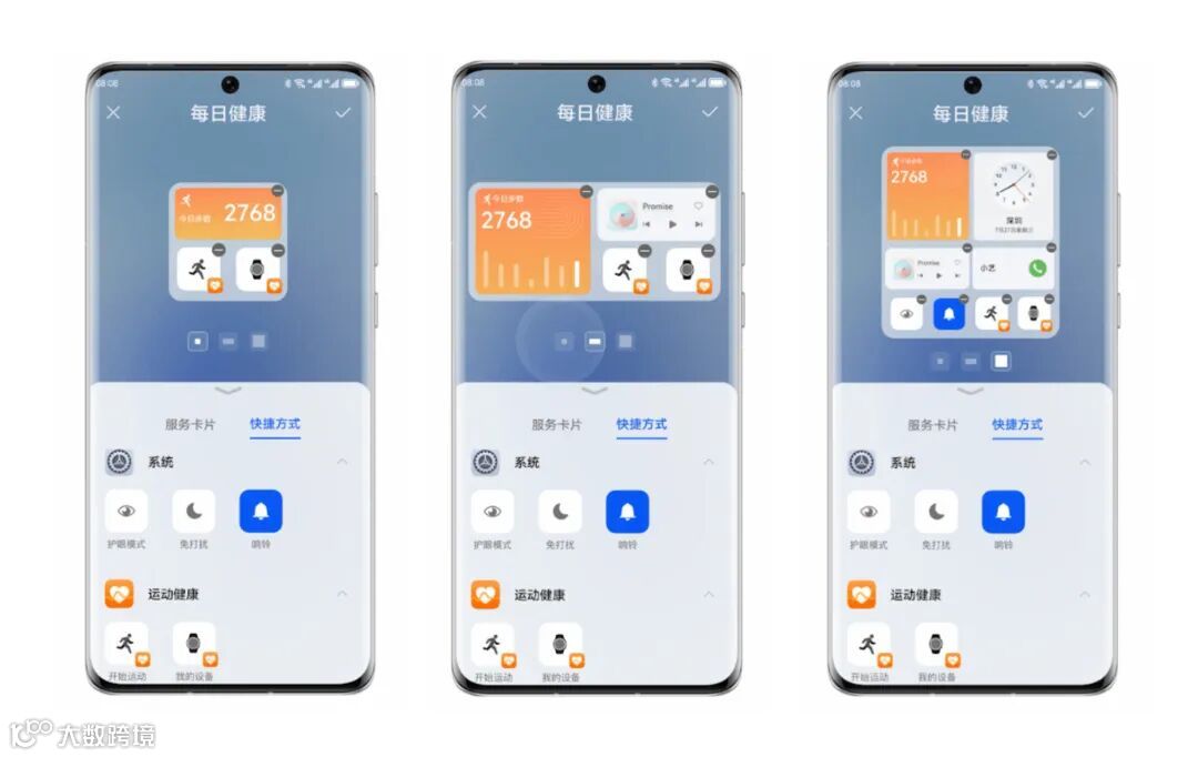 2、支持了卡片式文件夹,将类似早期安卓的快捷按钮与不同的比例卡片组合在一起,3种布局总有一种适合你。