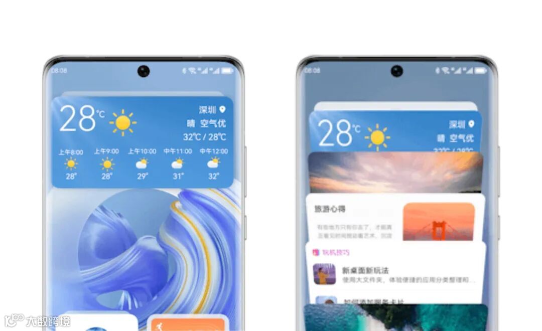 1、支持了卡片堆叠,将相同比例的卡片堆叠在一起。快速浏览不同卡片,调取功能。