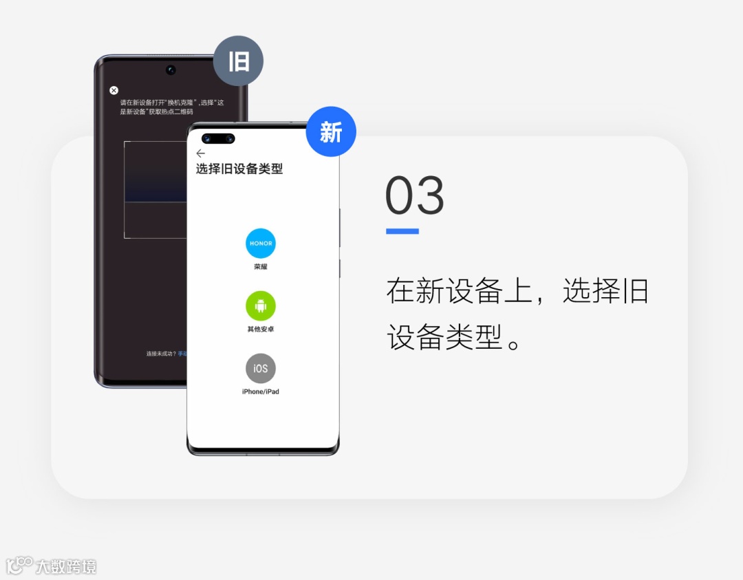 如果你的是苹果手机,那么就需要先去苹果的应用商店下载换机克隆应用,其他的旧设备可以使用浏览器扫描荣耀Magic3系列上的二维码下载。