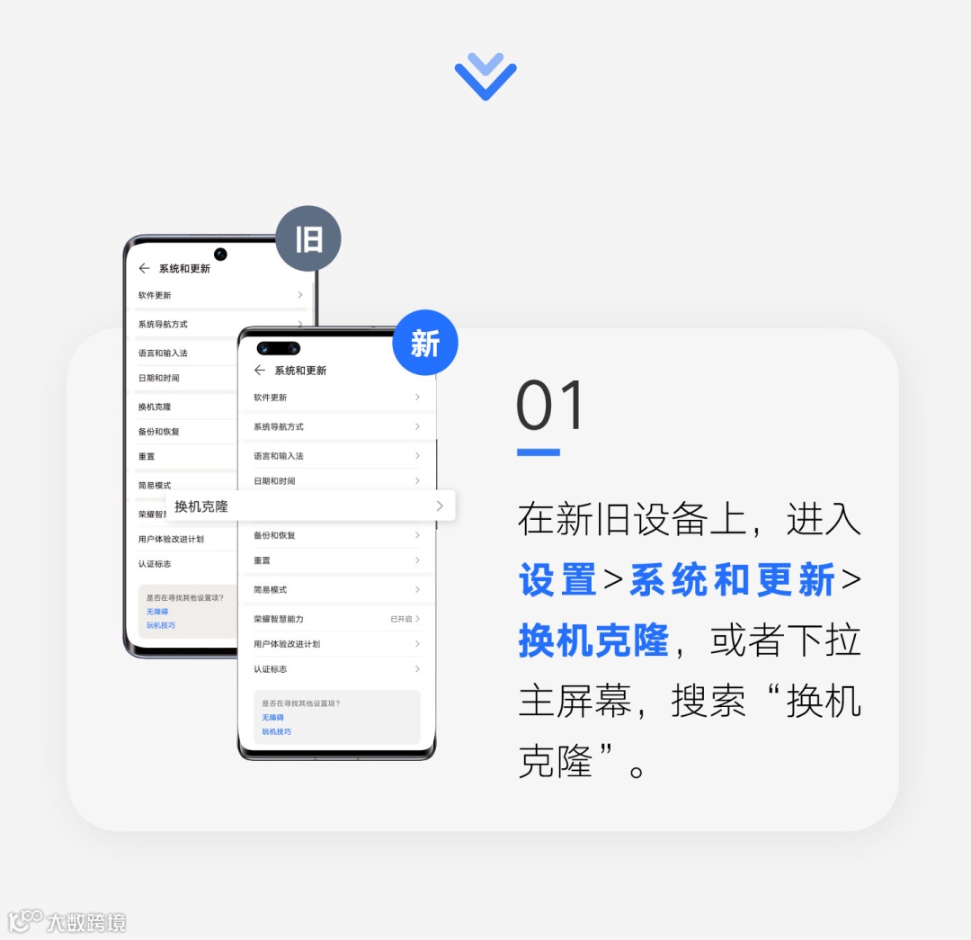 在使用一键换机克隆功能前,我们需要在新旧设备上进入设置界面找到“换机克隆”,然后根据屏幕的步骤提示操作即可