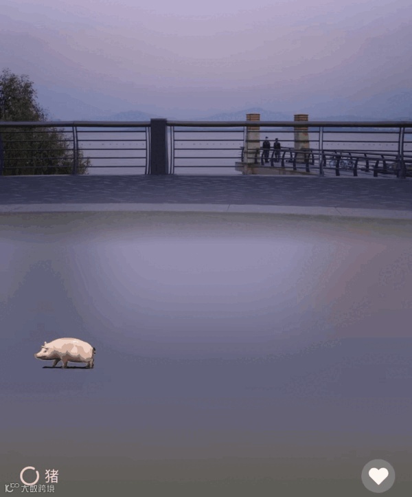 有人海边溜猪;