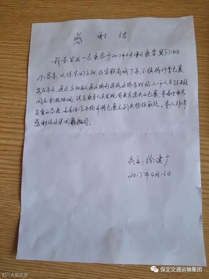 当天中午,这个小伙子特意乘车从高阳赶来,并带来一封感谢信请一定转交齐晓峰师傅,这一次帮了他的大忙。
