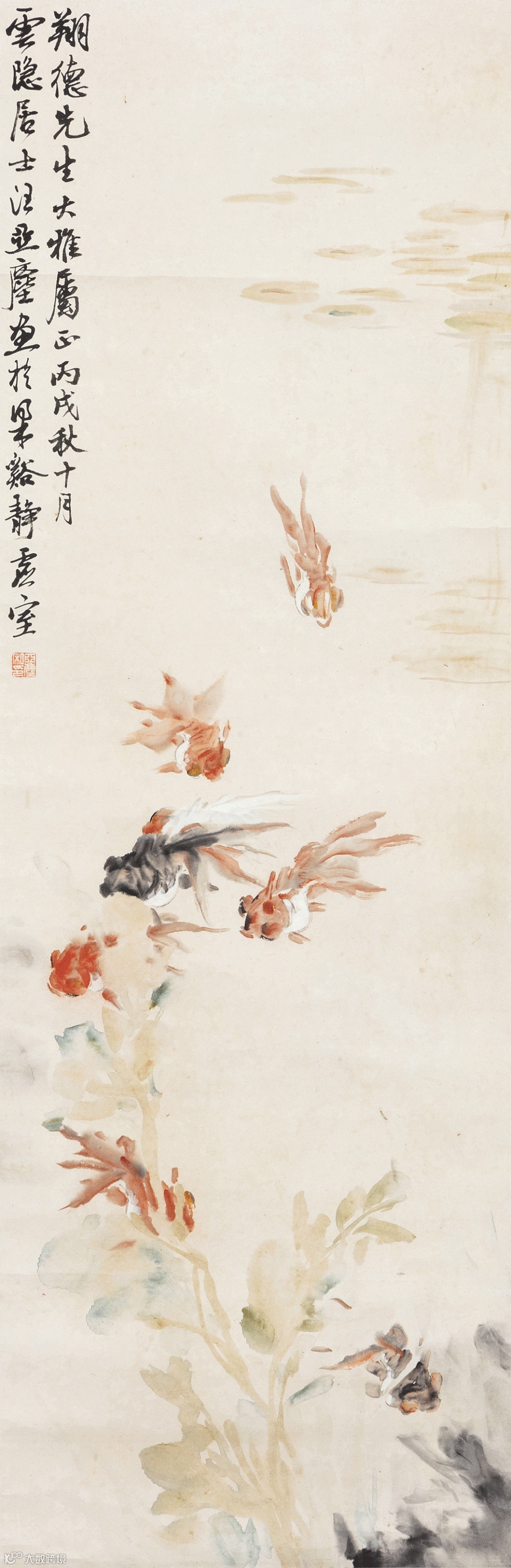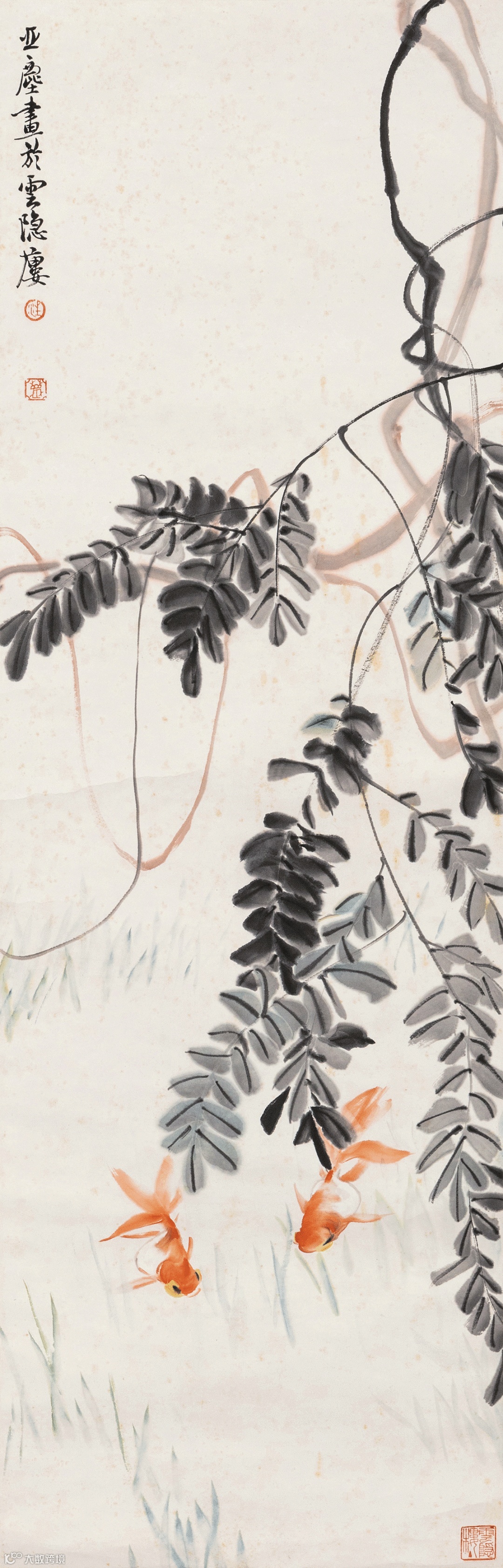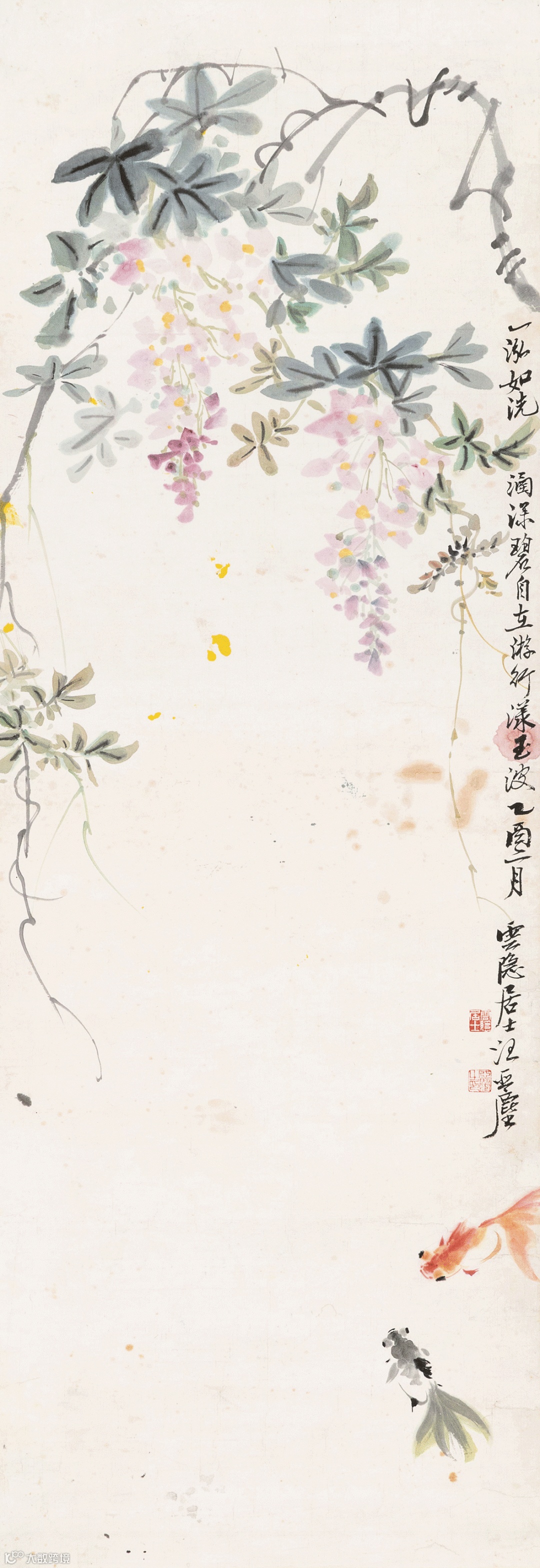 作者简介:汪亚尘(1894-1983)浙江杭州人。原名松年,改名亚尘,别署云隐居士。斋号云隐楼、蛙村。擅长花鸟虫鱼,淡雅秀逸,清趣动人,尤以画金鱼驰名于世。