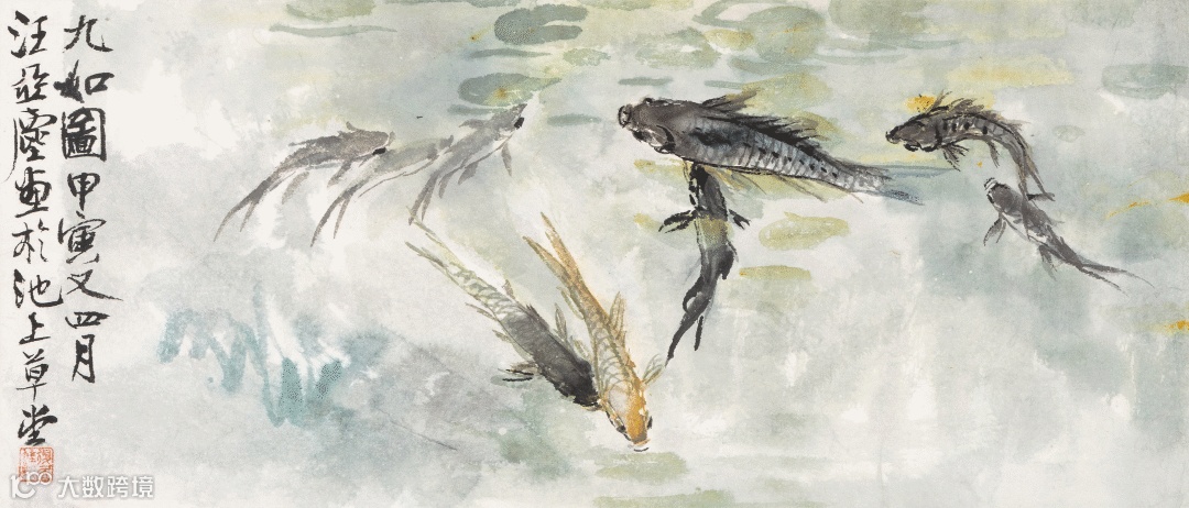 款识:一泓如洗涌深碧,自在游行漾玉波。云隐居士汪亚尘。