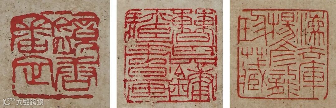 游戏(白文)、华喦(白文)、秋岳(白文)、镜塘审定(朱文)、杨文山印(朱文)、法库杨彦龙珍藏(朱文)、曹其镛珍藏书画(朱文)