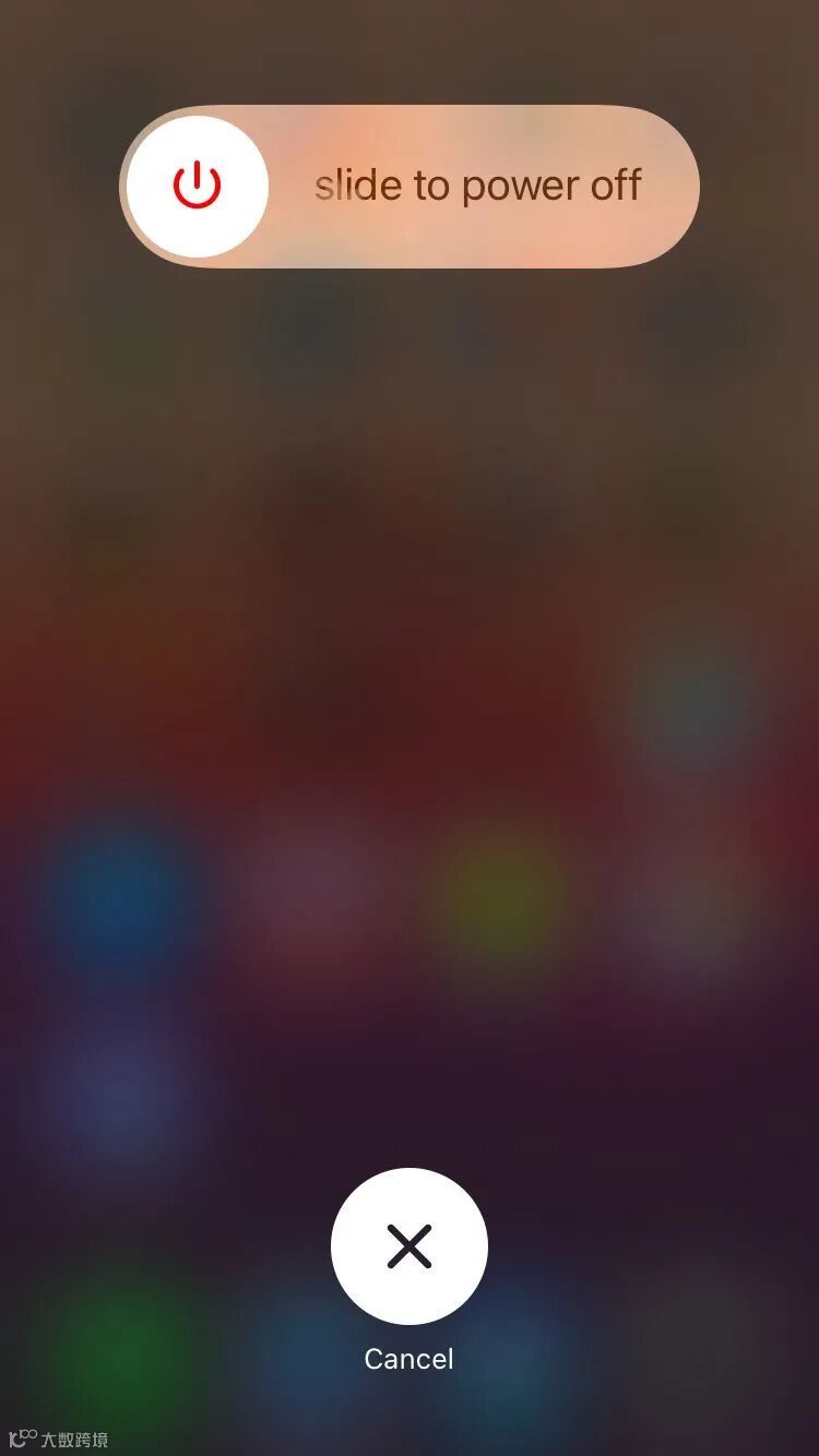 然后需要进入滑动关机界面,这里的操作也和有Home键的iPhone不太一样,步骤方法如下: