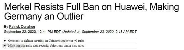 导读:美国对华为下狠手,其他西方国家态度如何?2020 年 9 月 23 日,彭博社报道称,德国总理默克尔(Ang