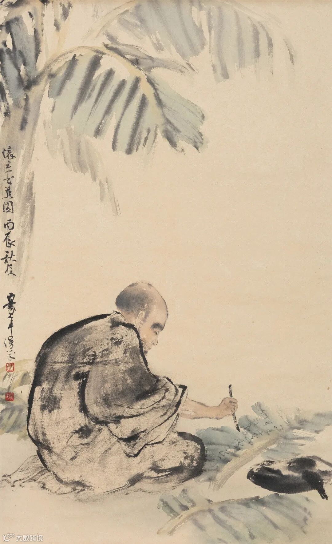 上款人:潘渭滨,1914年生于浙江省湖州市。著名国画家,教育家,海派画派代表人物。师从吴昌硕、潘天寿等名家。曾任中央文史馆馆员,浙江文史馆馆员,吴昌硕纪念馆名誉馆长等职。