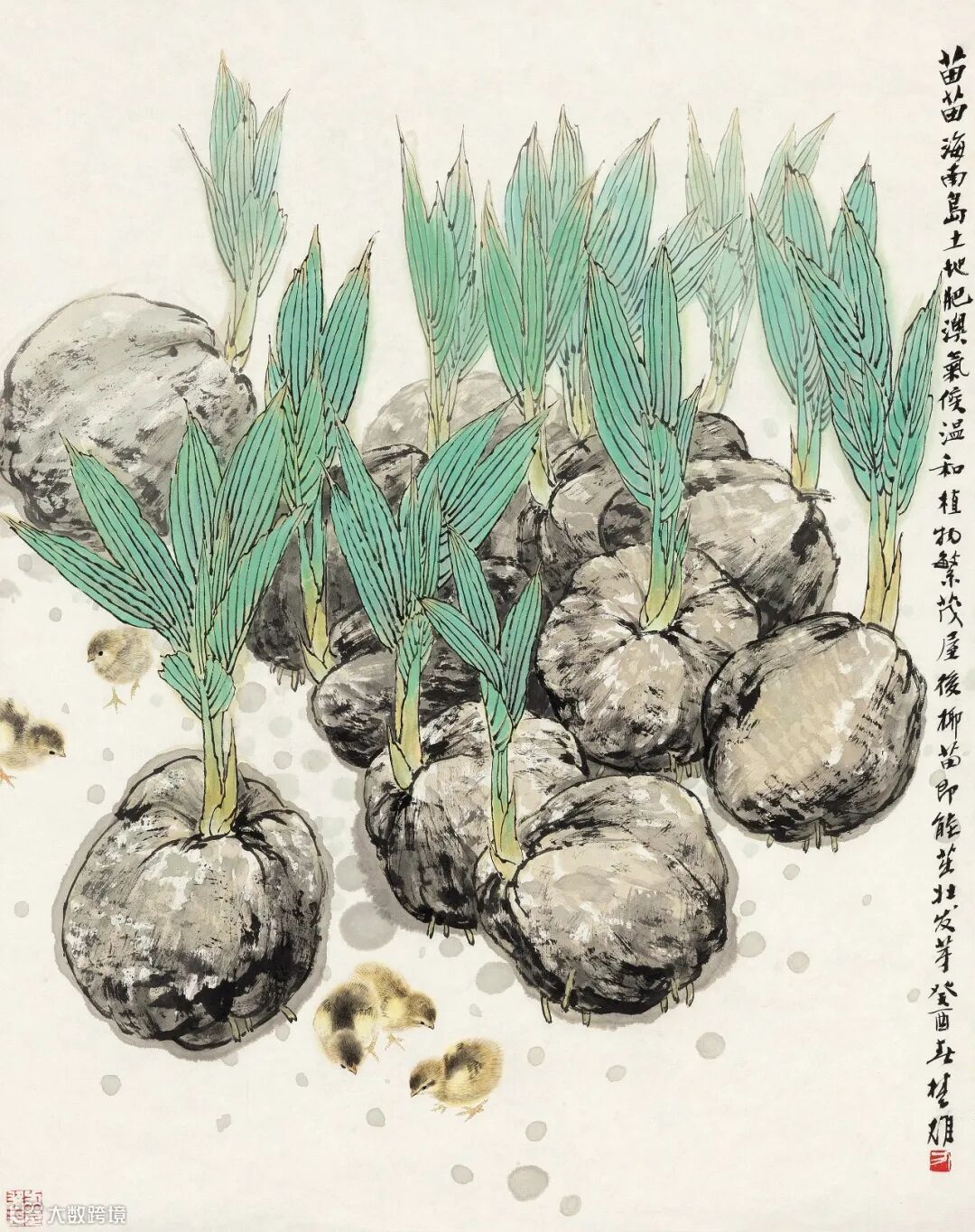 款识:海南岛上土地肥澳(沃),气候温和,植物繁茂,屋后柳苗即能茁壮发芽。癸酉春,楚雄。