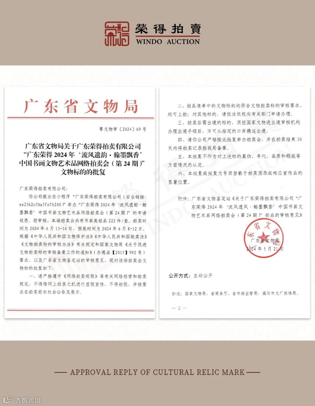结拍时间:6月15日 早上09:30时间顺延(逐件结拍,时间间隔3分钟)