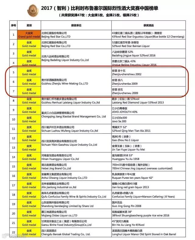 如今珍十五携珍八、珍五一同获得布鲁塞尔国际烈性酒大赛金奖,更加说明珍酒具备非常优秀的品牌基因与品质。