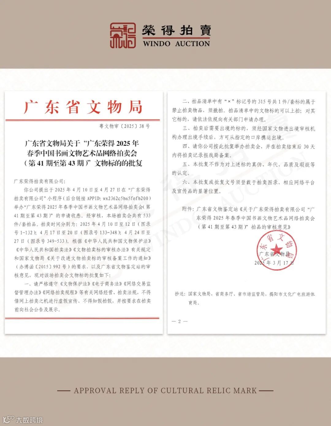 结拍时间:4月26日 早上09:30时间顺延(逐件结拍,时间间隔3分钟)