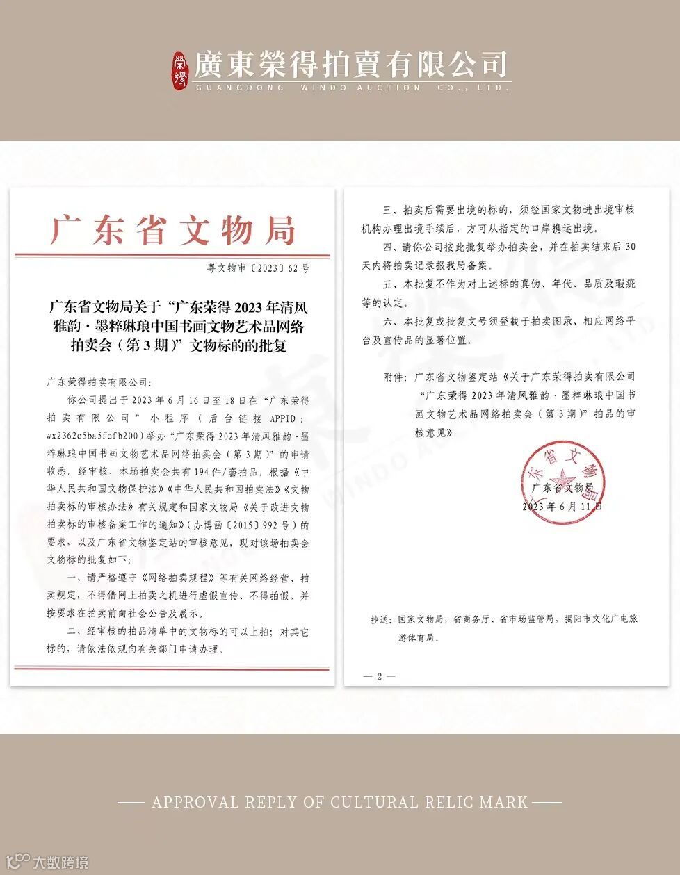 注:小程序出价需交保证金最低2000元人民币,放比系数为1:5(2000元最高可竞得1万元拍品,继续加价需自行增加保证金数额)