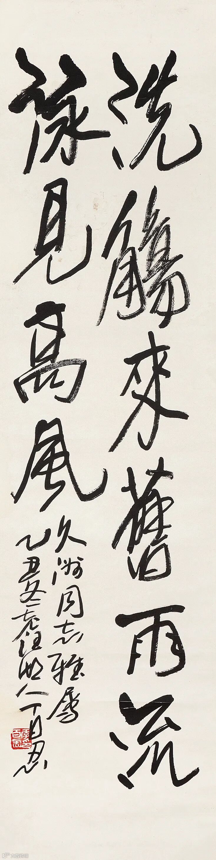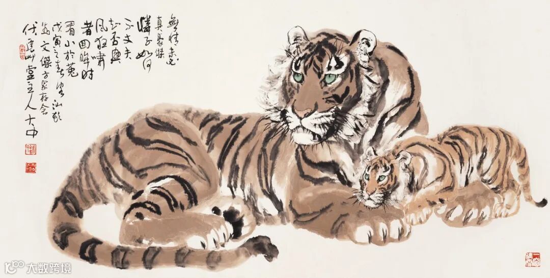 【款识】无情未必真豪杰,怜子如何不丈夫。知否兴风狂啸者,回眸时看小於菟。戊寅之春客汕头为文杰方家存念。伏虎草堂主人大中。