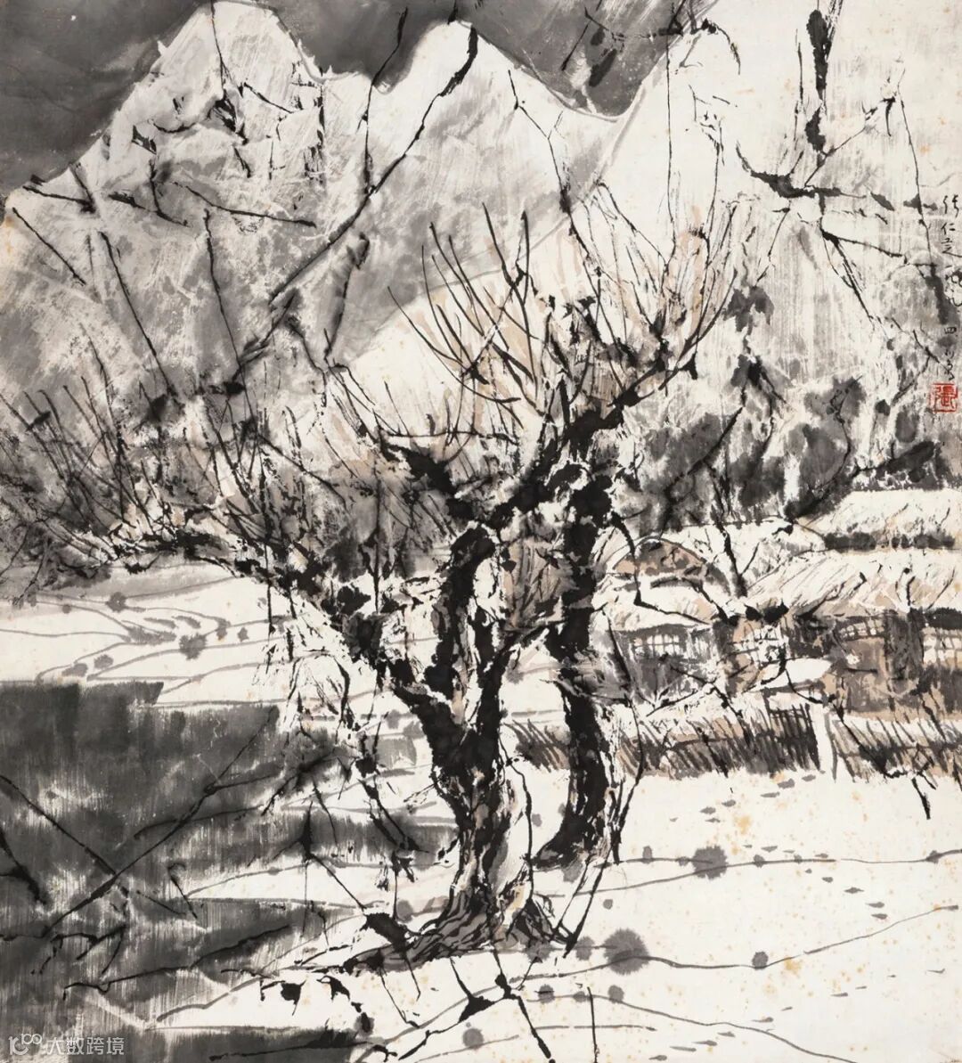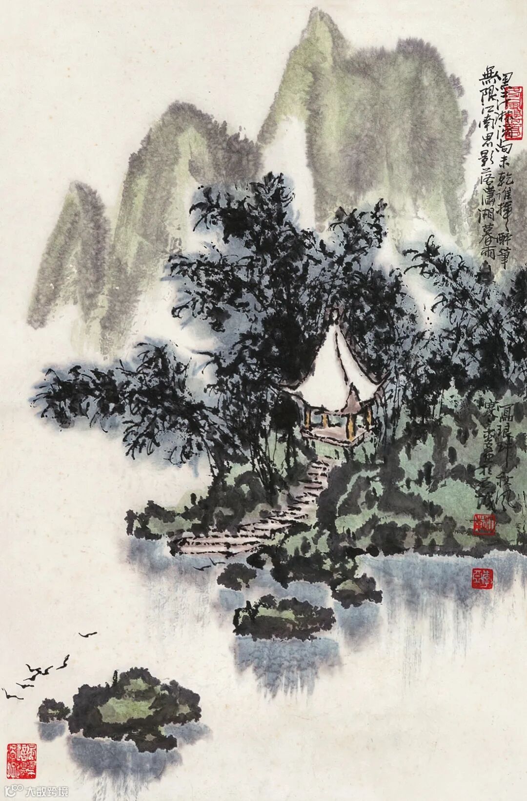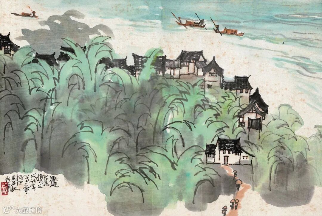 9.隔溪烟雨图。补款昌宇画于汕头。