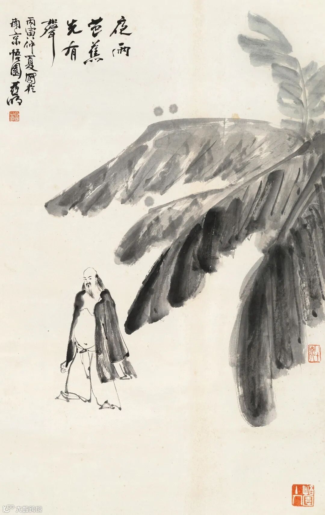 【款识】夜雨芭蕉先有声。丙寅仲夏写于南京悟园。亚明。