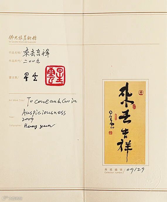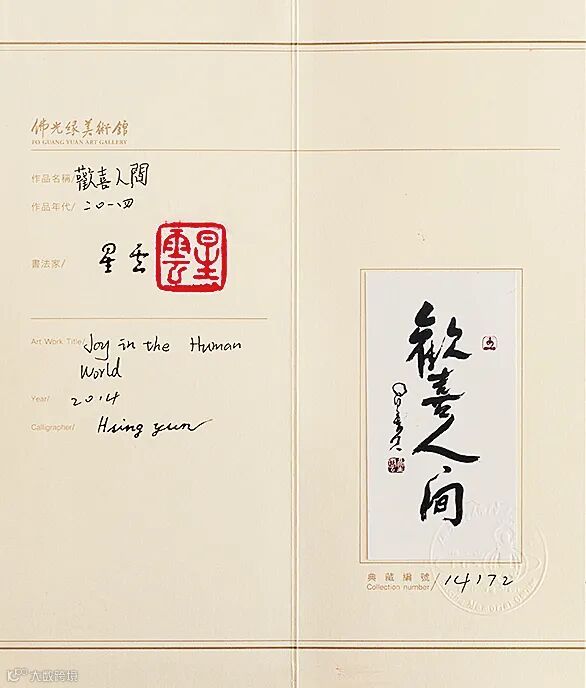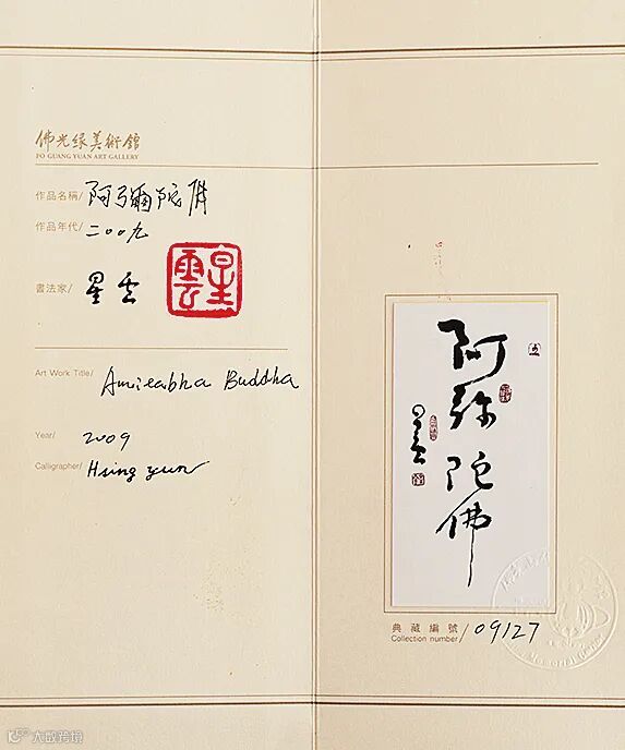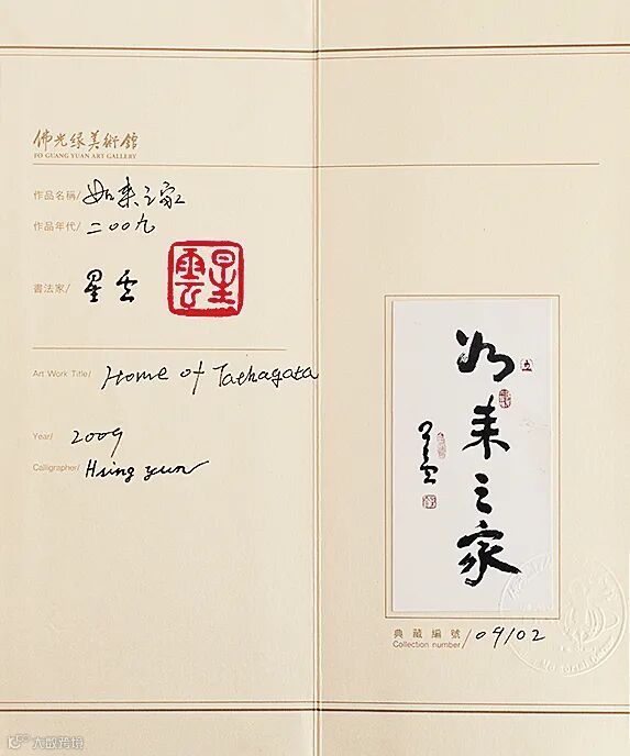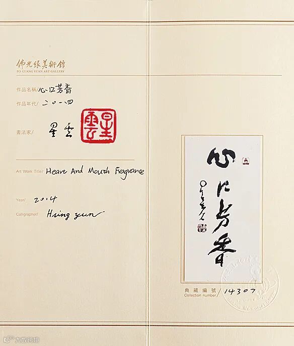 【钤印】佛光永普照(白文)、法水永流长(朱文)、星云(朱文)