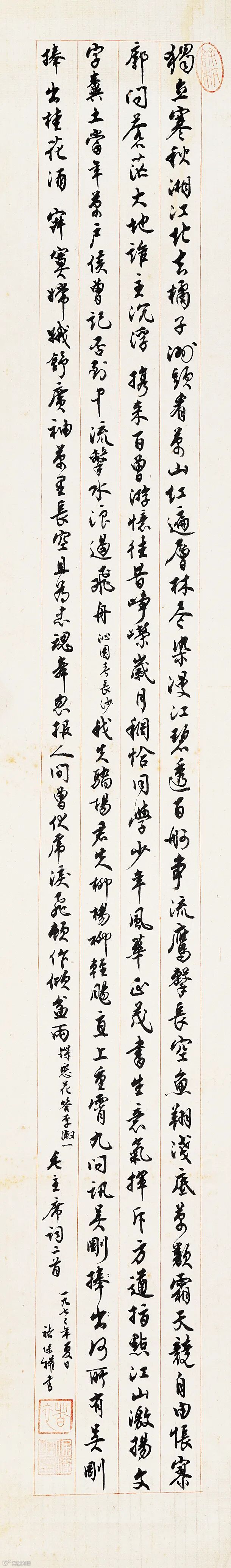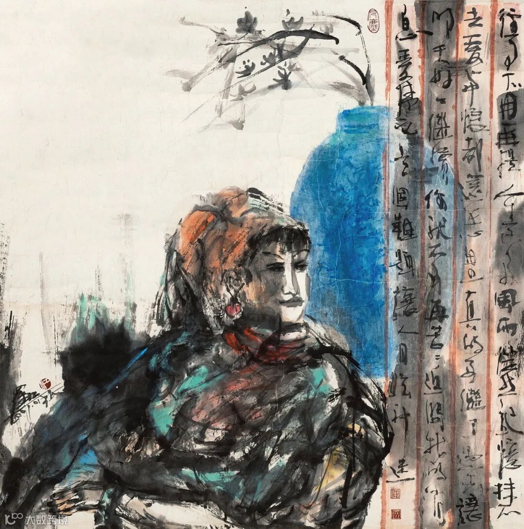 【款识】往事不用再提,人生已及风雨,徒然记忆抹不去,爱与恨都还在心里,真的要□了过去,让明天好好继续。你就不要再苦苦追问我的消息。爱情它是个难题,让人目眩神迷。罗江2001.01