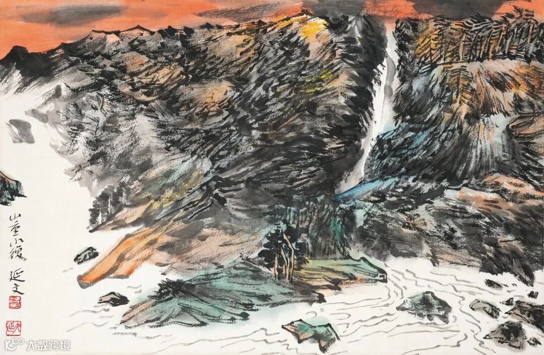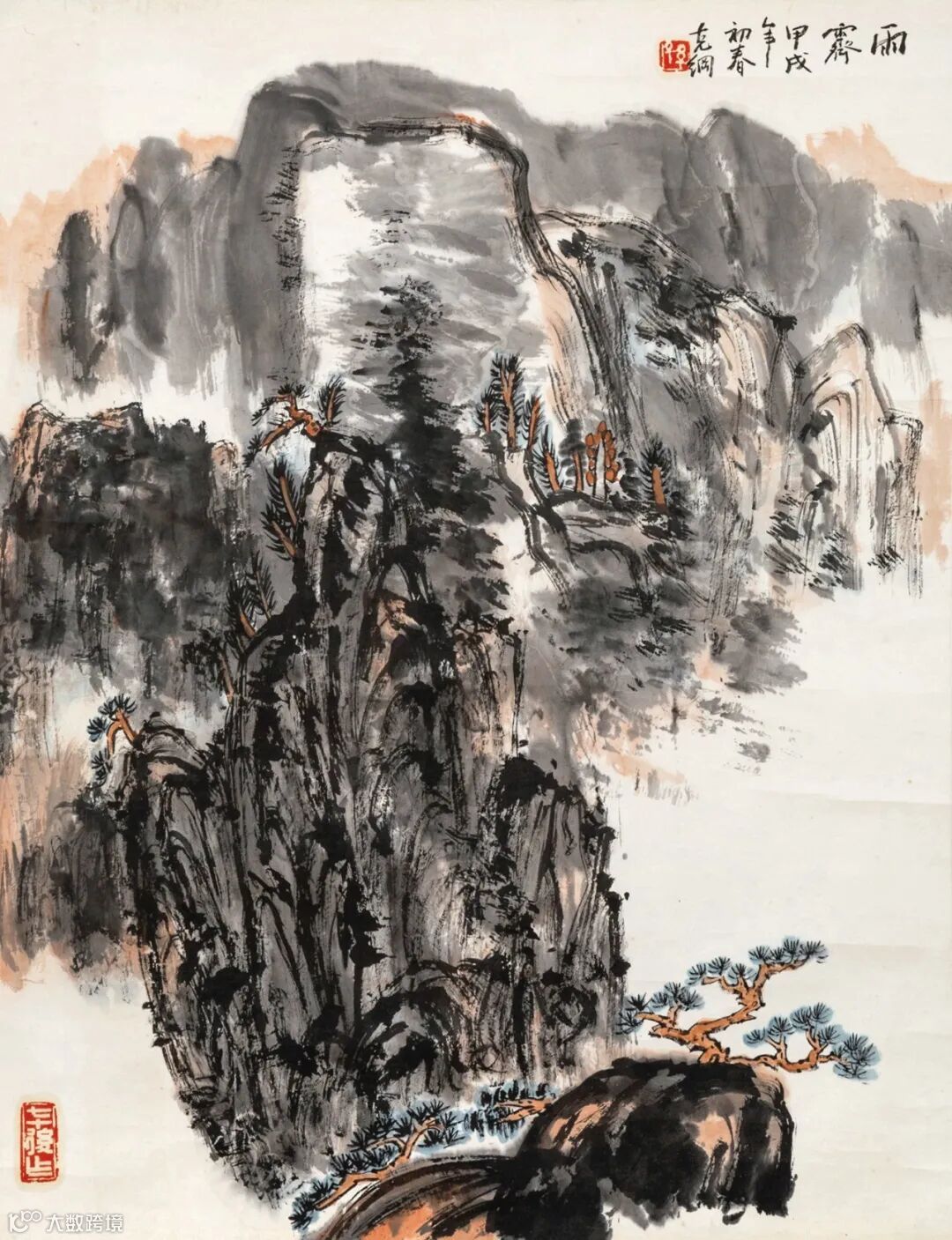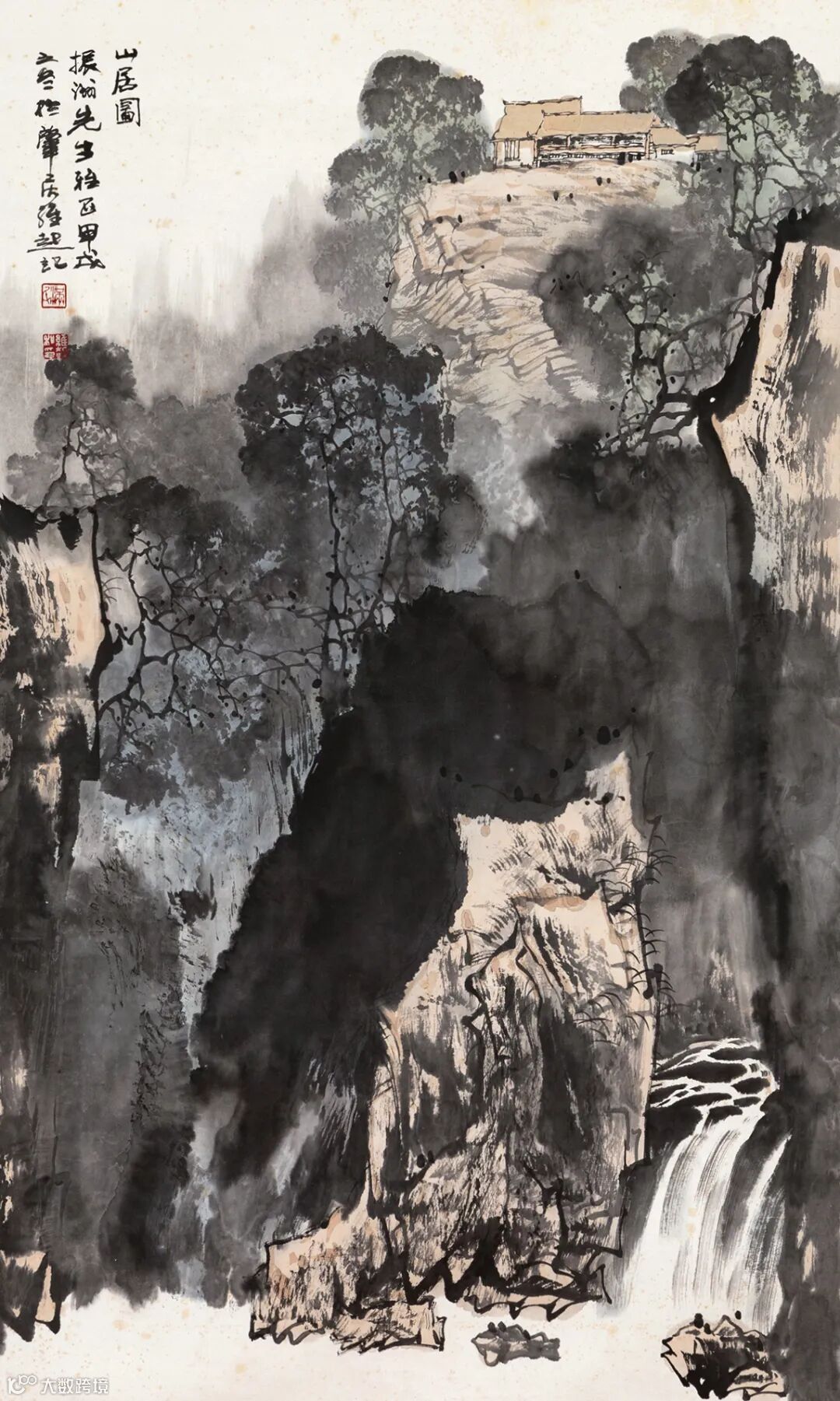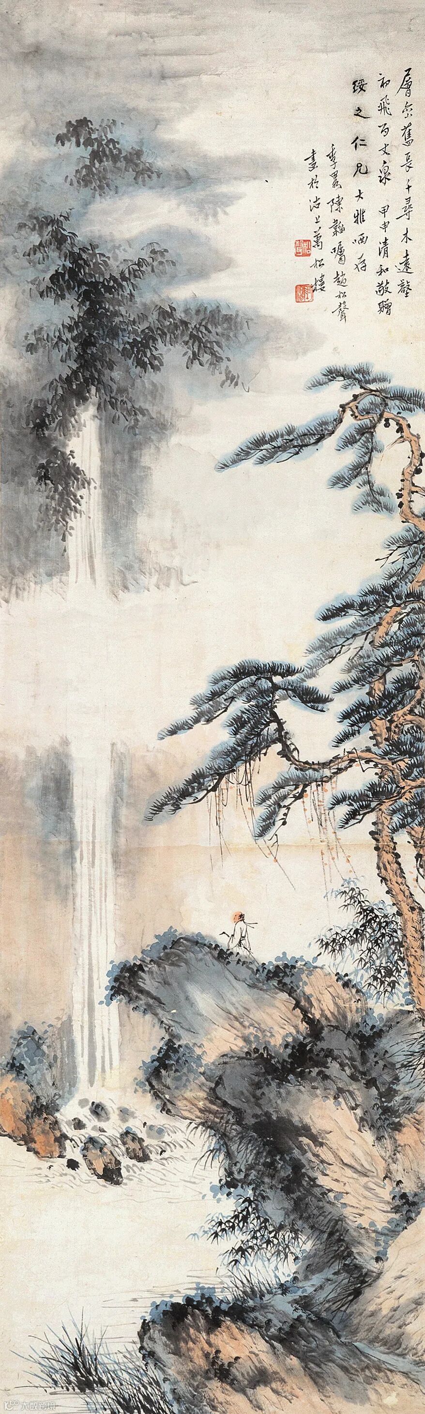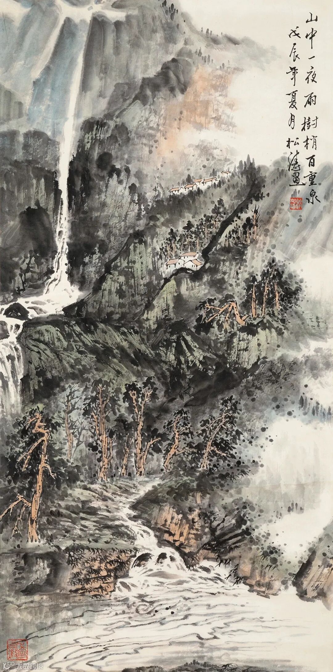 【款识】山中一夜雨,树杪百重泉。戊辰年夏月松涛画。