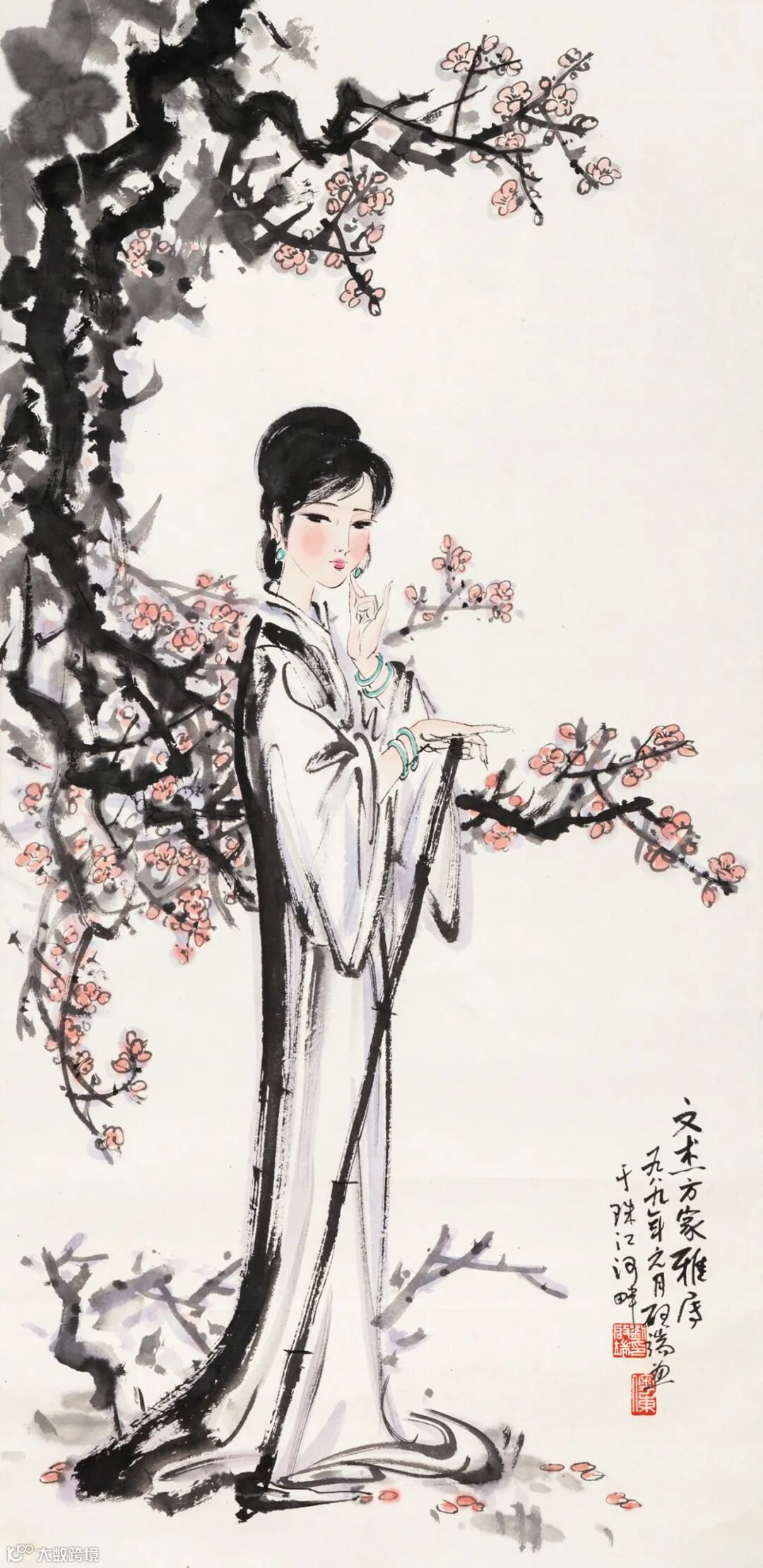3.墨染娇姿浅澹匀,画中亦足赏青春。长安醉客靴为祟,去踏沉香亭上尘。己卯岁制于南国,昌宇记。