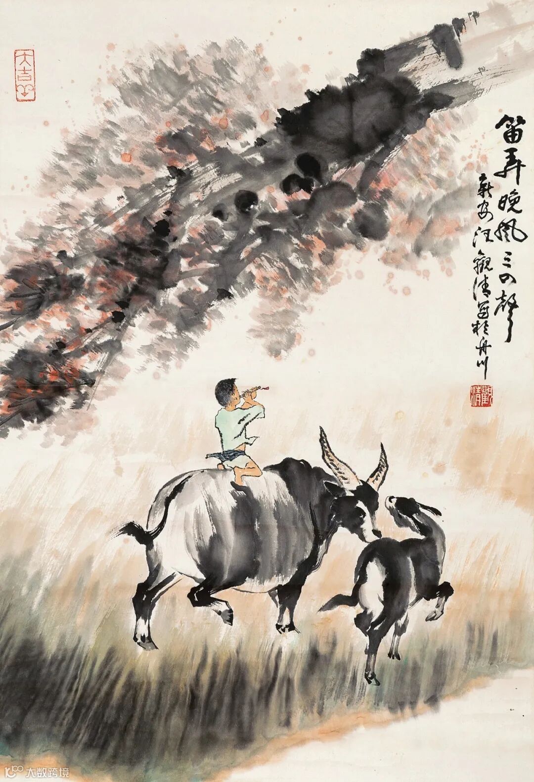 【款识】笛弄晚风三四声,新安汪观清写于舟州。
