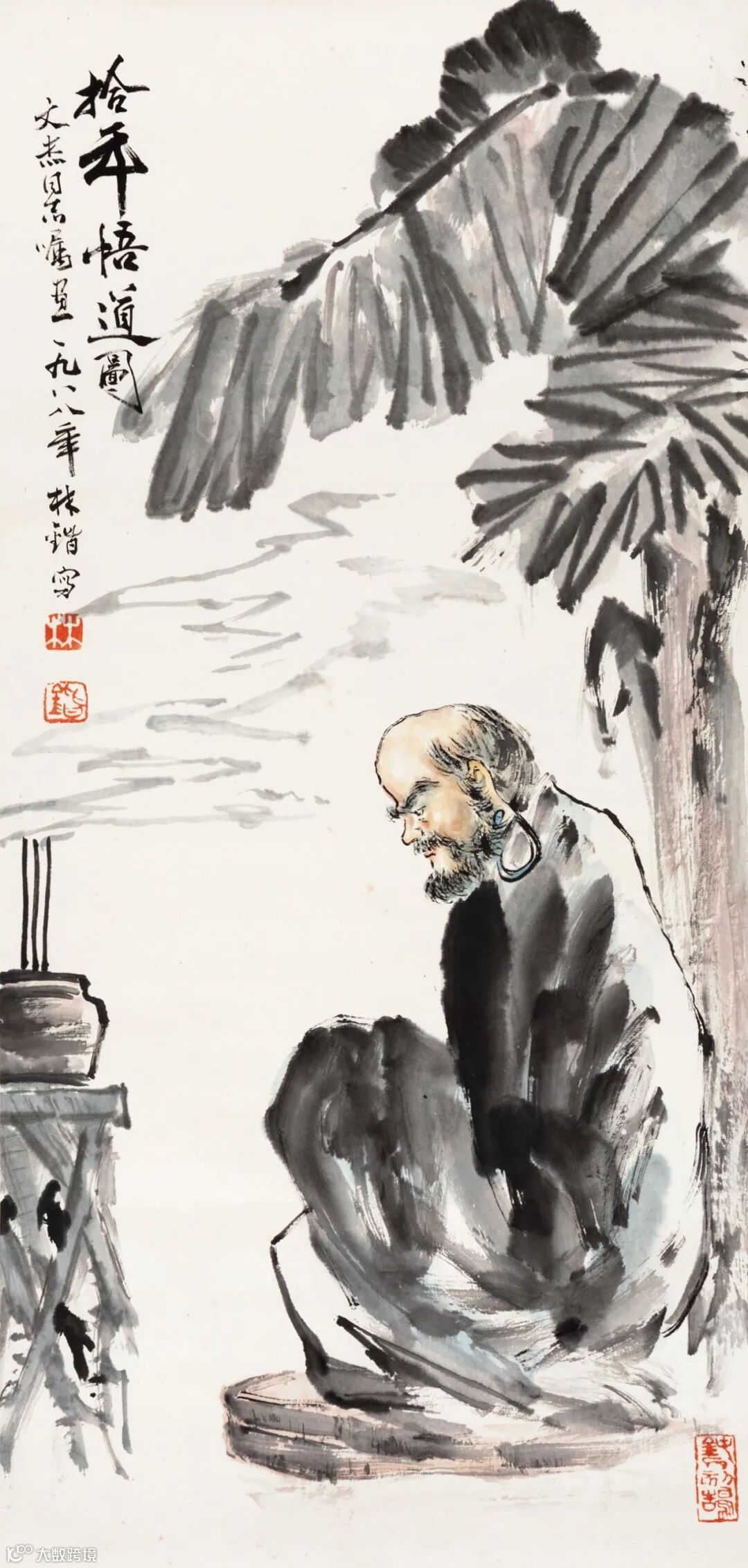 【款识】拾年悟道图。文杰同志嘱画,一九八八年林锴写。