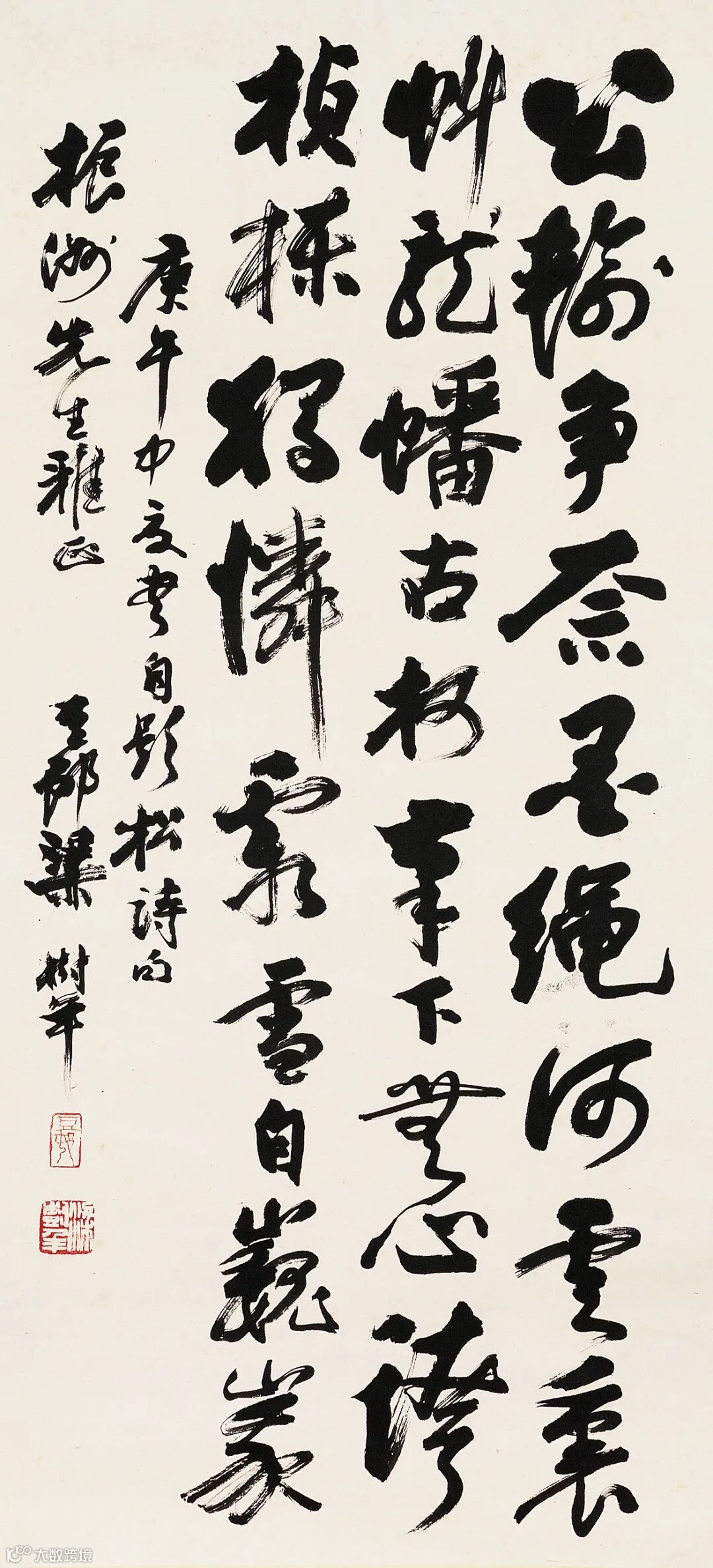 【款识】庚午中夏书自题松诗句。振洲先生雅正,豆村梁树年。