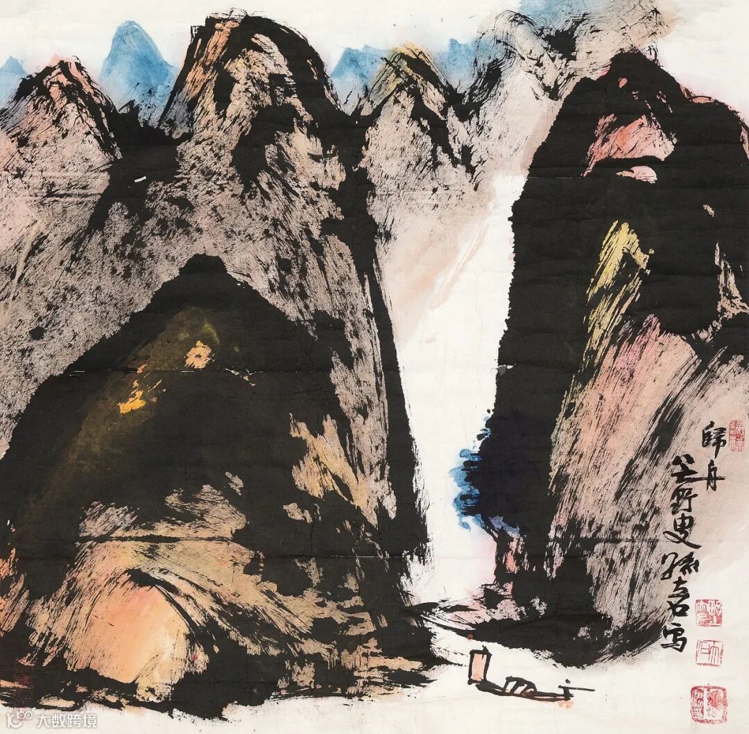 【题签】邵宇桃园山水轴。画赠齐燕铭,齐燕铭任周恩来秘书。