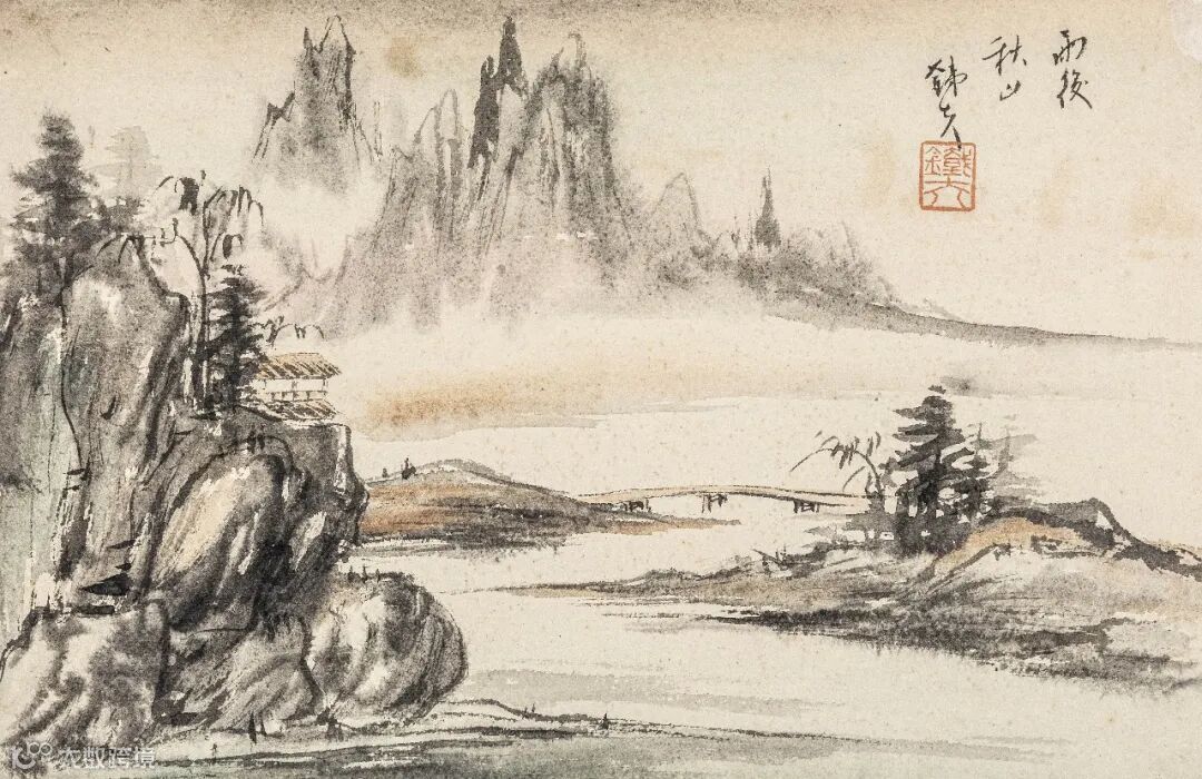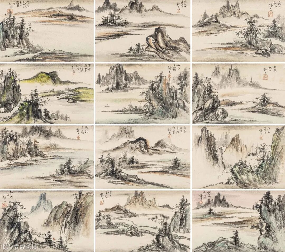 这套创作于文化剧烈碰撞年代的山水册页,既非简单的"西画中韵",亦非传统的“古法新用”,而是通过材质、技法、观念的全面对话,重构了山水画的现代性表达。当水彩的透明性与生宣的渗透性相遇,当焦点透视与散点观照共存,李铁夫以其独特的"文化摆渡人"身份,在十二帧册页中完成了中国山水画从古典到现代的惊险一跃。这些盈掌之间的水墨实验,至今仍在诉说着:真正的艺术传承,从不是非此即彼的取舍,而是在异质文化的碰撞中,淬炼出超越时空的美学结晶。