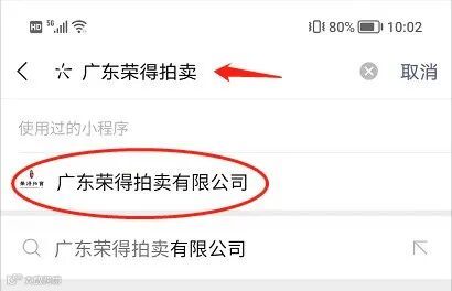 2.输入【广东荣得拍卖】点击进入“广东荣得网拍小程序”