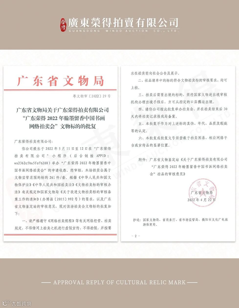 注:小程序出价需交保证金最低2000元人民币,放比系数为1:10(2000元最高可竞得2万元拍品,继续加价需自行增加保证金数额)