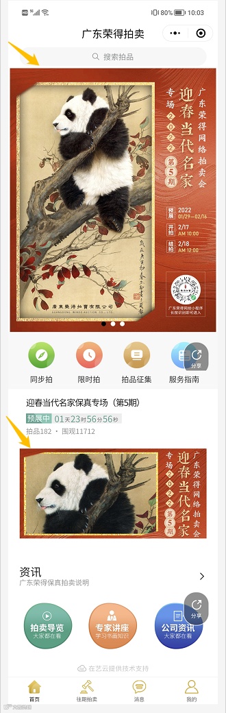 3.进入小程序首页,点击海报图片即可进入专场详情