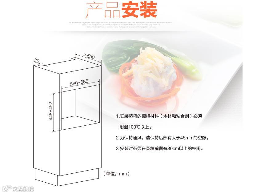 通过前置散热出风口设计,确保在密封的橱柜里使用时散热通畅,无需对橱柜做特殊处理,燃气灶下面的柜子也可以安装嵌入式蒸箱,安装嵌入式蒸箱的柜子可以不装背板,以便安装嵌入式蒸箱的空间更大;