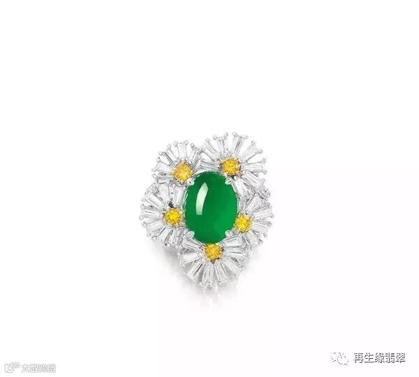天然翡翠配黄色钻石及钻石「烟花」戒指