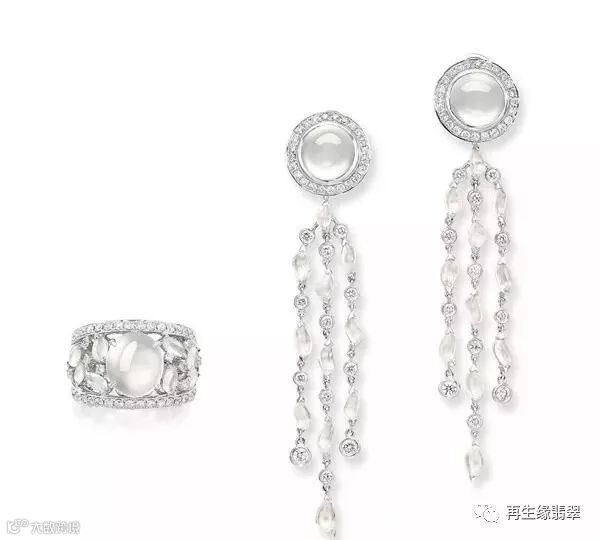天然冰种翡翠配钻石戒指;及吊耳环套装