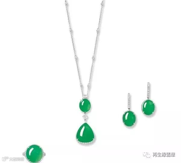 天然翡翠配钻石戒指,吊耳环及吊坠项链套装