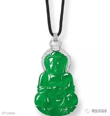 珍罕天然翡翠「观音」配钻石吊坠项链