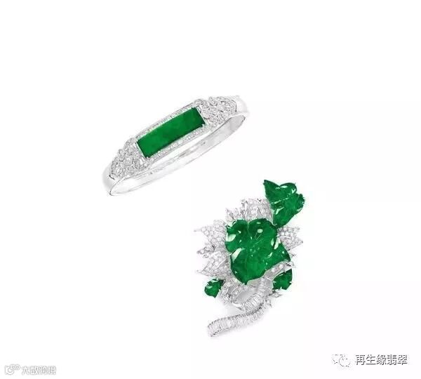 天然翡翠配钻石「花朵」胸针/吊坠;及天然翡翠配钻石手镯