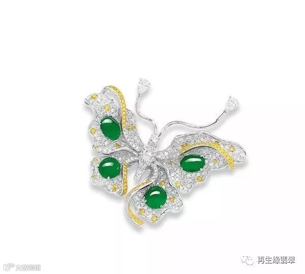 天然翡翠配黄色钻石及钻石「蝴蝶」胸针/吊坠,明蕤