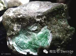 缅甸灰卡老场口高绿色翡翠原石----半明半赌