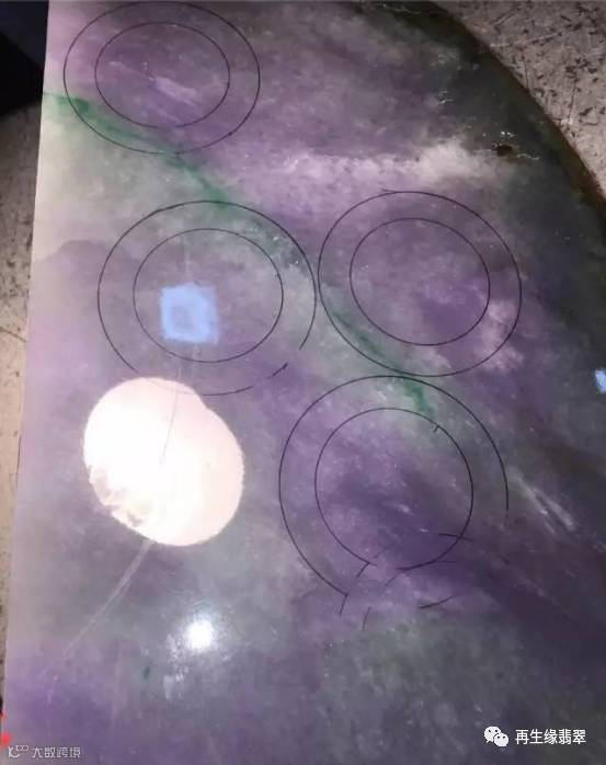 画好位置,看一下,种水都一流了,目测能开出飘花手镯来。