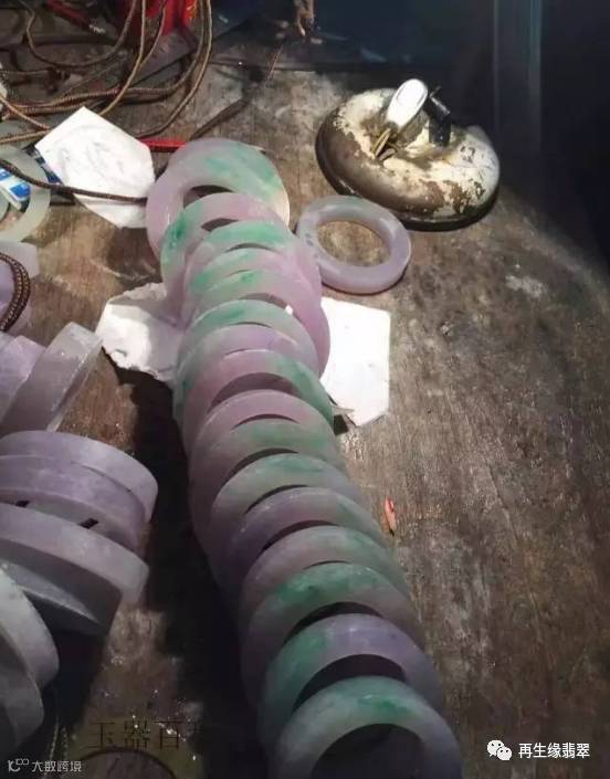 有同学会问:手镯是怎么做成的呢?一般来讲要经过审料、切石、开片、取镯、打磨、抛光这几个工序。对开手镯来讲,每次开切都可谓惊心动魄。