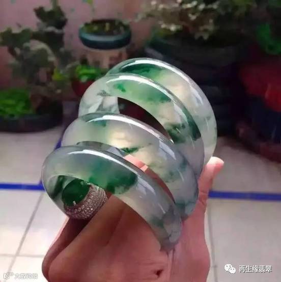看到没,高冰种,飘绿花,极品手镯啊!美腻了~