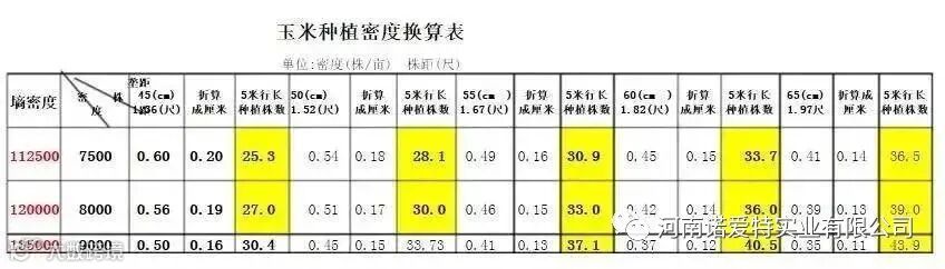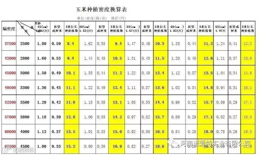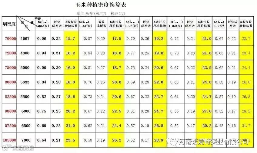 四、玉米密度表