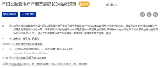 3、产妇安胶囊治疗产后恶露延长的临床观察