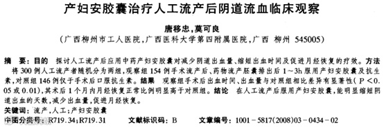 4、产妇安胶囊治疗人工流产后阴道流血临床观察